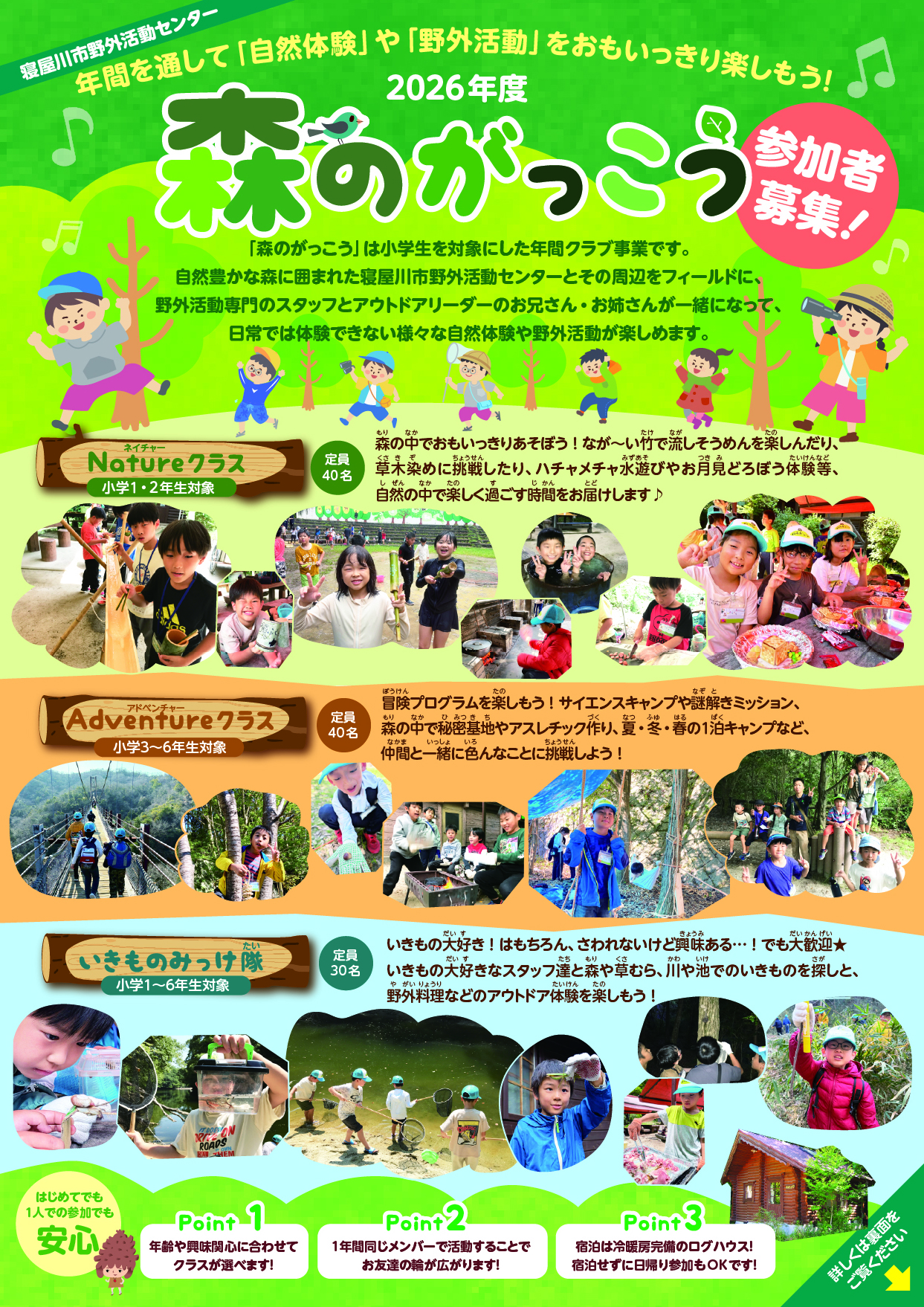 定員:NatureクラスとAdventureクラスは40名、いきものみっけ隊は30名